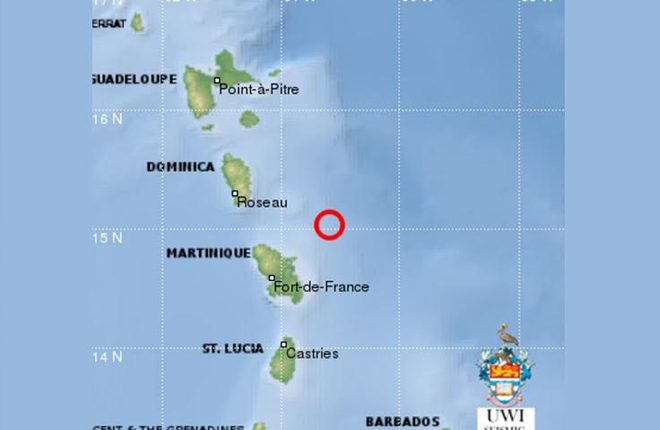 The quake occurred around 3:54 p.m. at a depth of 20 km, 120 km northeast of the capital, Castries; 73 km northeast of Fort-de-France, Martinique; and 93 km east-southeast of Roseau, Dominica, according to the University of the West Indies Seismic Research Centre (SRC).