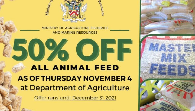 Basseterre, St. Kitts, November 4, 2021 (MoA, Media Unit) — Effective Thursday November 4 2021, all animal feed at the Department of Agriculture will be available to farmers at half price.