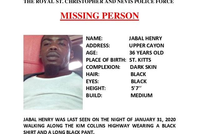 Jabal Henry was last seen on the night of January 31, 2020 walking along the Kim Collins Highway wearing a black shirt and a long black pant.