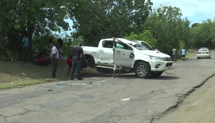 According to reports, the accident occurred at around 12:30 pm on Saturday September 14 between a white Toyota pickup truck P 496 owned by Island Purified Water and was driven by employee Kurtney Douglas of McKnight and motor vehicle RA 1113 driven Ourtic Gillard.
