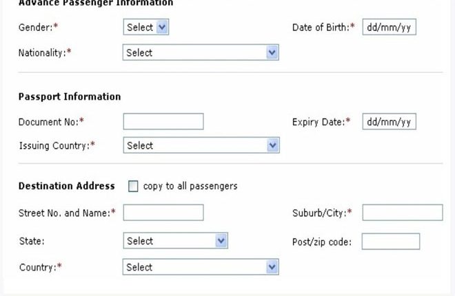 The required information of a passenger includes bio data such as the full name (as shown on travel document); gender; date of birth; nationality; country of residence; type of travel document; travel document number (expiry date and country of issue); as well as the address of where the passenger will be staying.