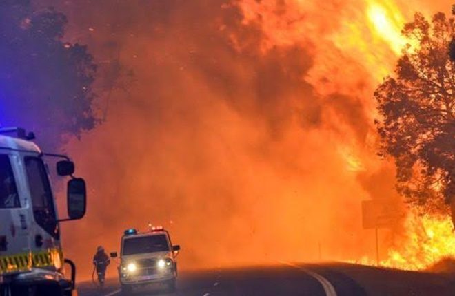 (BBC) A massive bushfire that devastated a small town is still burning out of control in Western Australia.