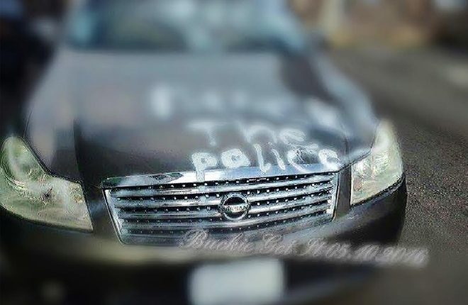 Officials from the Royal Christopher and Nevis Police Force told ZIZ that a student of Windsor University who resides at St. Johnson village discovered the vehicle covered with graffiti in the early hours of Tuesday morning.