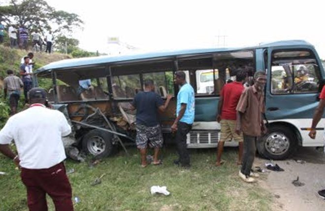 Police report that about 3:10 pm the driver of a truck travelling towards Duncans lost control of the vehicle. It slammed into a Toyota Coaster bus headed to the Falmouth Port with about 20 cruise ship passengers. The tourists were said to be heading back from the popular Dunn’s River Falls attraction in St Ann.