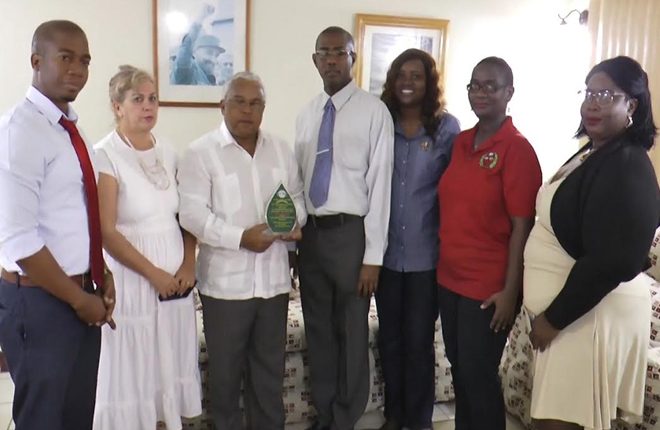 (ZIZ News) — In the wake of the passing of former leader of Cuba, Fidel Castro, the Cuban Alumni Association has paid their respects to the people of Cuba by presenting a dedication plaque to the Ambassador of Cuba, His Excellency Hugo Ruiz Cabrera.