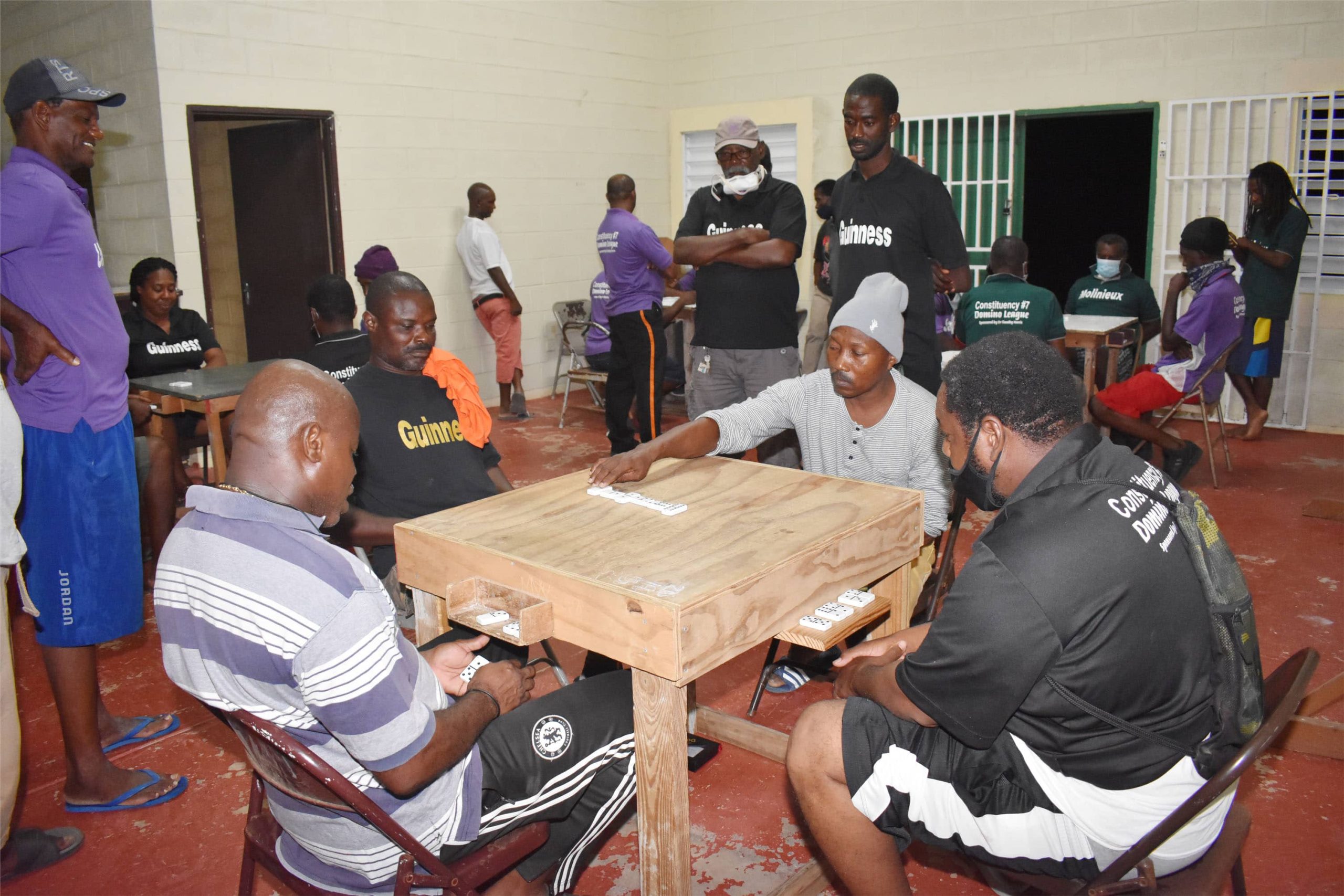 Captain of Unstoppable Domino Club, Samuel Wilson, in action when his team met and beat Guinness Domino Club 13-7 at the Edgar Gilbert Sporting Complex pavilion.