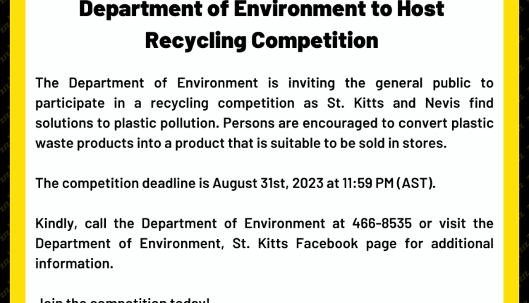 The Department of Environment is inviting the general public to participate in a recycling competition as St. Kitts and Nevis find solutions to plastic pollution. Persons are encouraged to convert plastic waste products into a product that is suitable to be sold in stores.