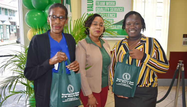 The Development Bank of St. Kitts and Nevis was established by an Act of Parliament NO. 1 of 1981 and opened its doors to the public on May 22 of the same year. Wednesday May 22 was observed as the institution’s 38th anniversary with a Customer Appreciation Day, where the first customer in the banking halls received an award. All customers who came in the banking halls were surprised when they were treated to snacks, while a few brave ones who agreed to be quizzed won attractive tokens on giving the correct answers.