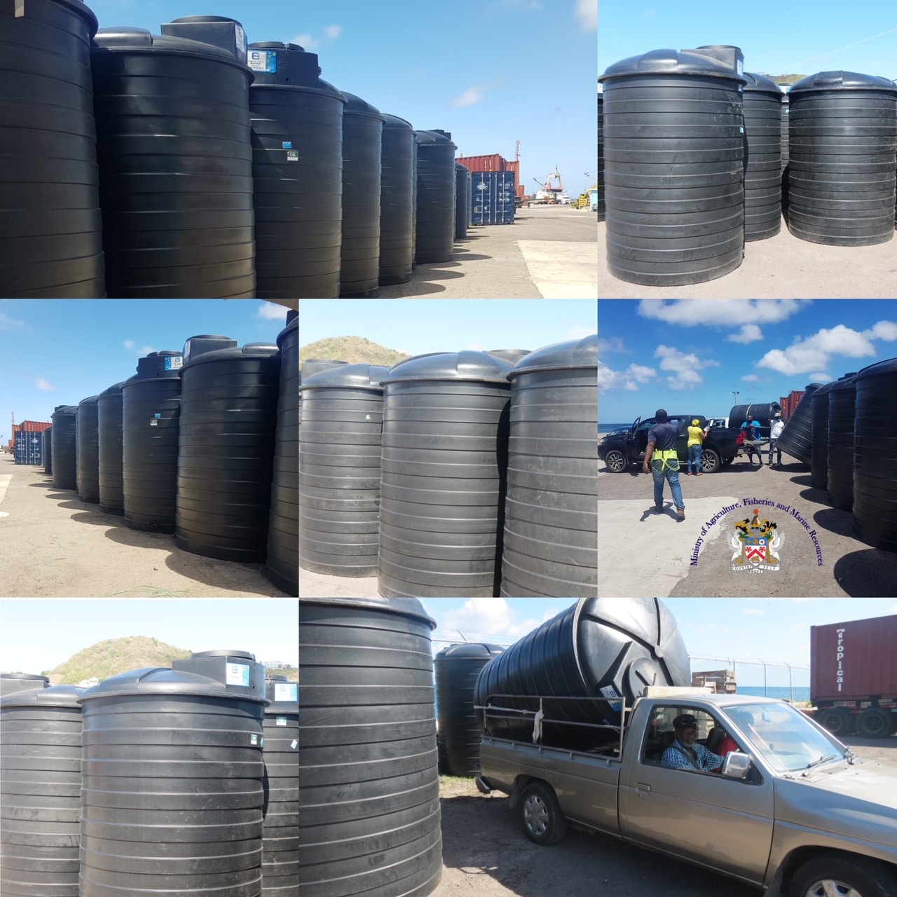 Basseterre, St. Kitts, May 9, 2021 (MoA Media & Communication Unit) — In keeping with its pledge to address the water supply challenges facing many farmers in St.  Kitts, the Ministry of Agriculture, Fisheries and Marine Resources is distributing 100 water tanks measuring over the next few days.