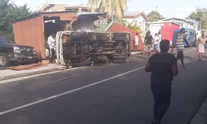 Richards swerved and lost control of the vehicle which caused it to run into a nearby shed and flip on its side. 28 year old Jimmy Jules of St. Paul’s, who was a passenger on the back of the truck, was flung from the vehicle as a result.