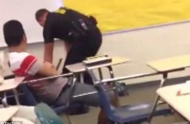 The incident occurred after the officer was called into a classroom when the student refused to leave.
