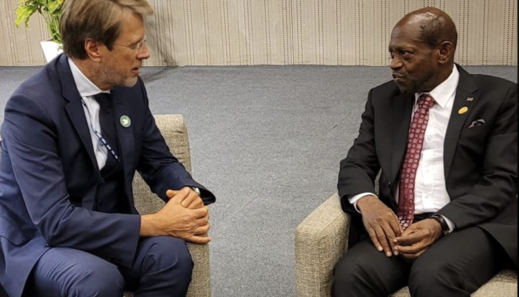 Basseterre, St. Kitts, October 07, 2022 (SKNIS): The Right Honourable Dr. Denzil Douglas, St. Kitts and Nevis’ Minister of Foreign Affairs engaged in bilateral talks with His Excellency Samuel Zbogar, Secretary of State for Political and Multilateral Affairs, Economic Diplomacy and Development Cooperation of the Republic of Slovenia, in the margins of the 52nd General Assembly of the Organization of American States held in Lima, Peru from October 05-07, 2022.