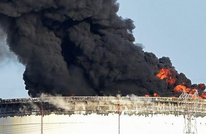 The fires were visible a long distance from the plant at Berre L’Etang.
