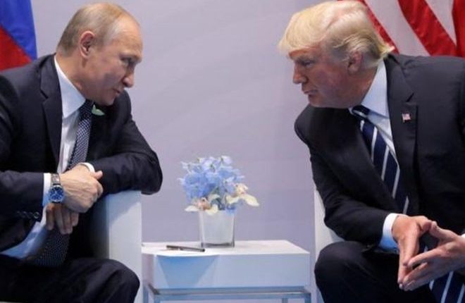 “It’s an honour to be with you,” said Mr Trump to Mr Putin, who responded: “I’m delighted to meet you.”