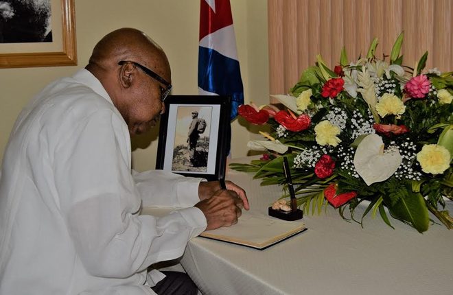 During a visit to the Cuban Embassy on November 30th, 2016, Sir Tapley signed the Book of Condolences before speaking to Ambassador Cabrera.