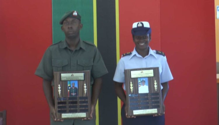 Basseterre, St. Kitts, August 24, 2020 (ZIZ News):Two soldiers of the St. Kitts-Nevis Defence Force were recognized for their achievements in the force during a short ceremony on Monday at the Defence Force camp.