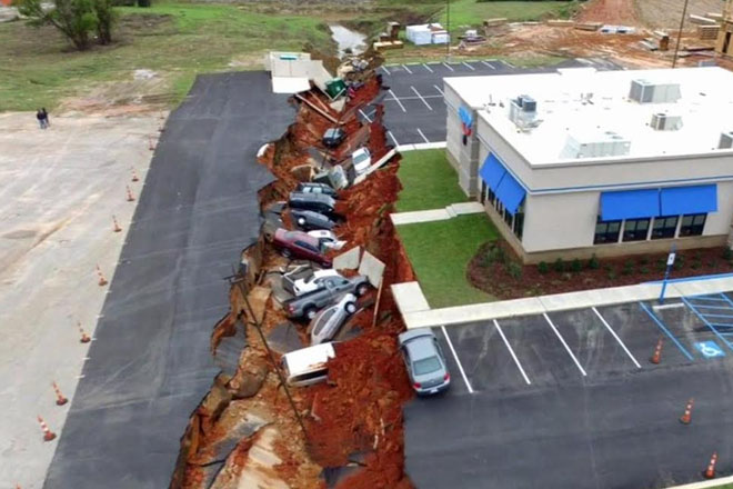 (BBC) Tests are to take place to determine why the ground opened up in a Mississippi city, swallowing 12 cars in a restaurant car park.