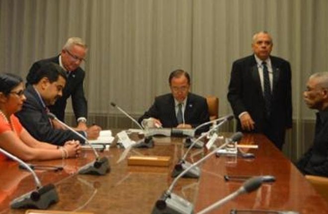 Georgetown, Guyana — As Guyana seeks to bring a legal end to the 50-year-old Venezuelan territorial threat to Guyana, President David Granger met with the United Nations Secretary General Ban Ki-moon and president of Venezuela, Nicolás Maduro, on Sunday evening.