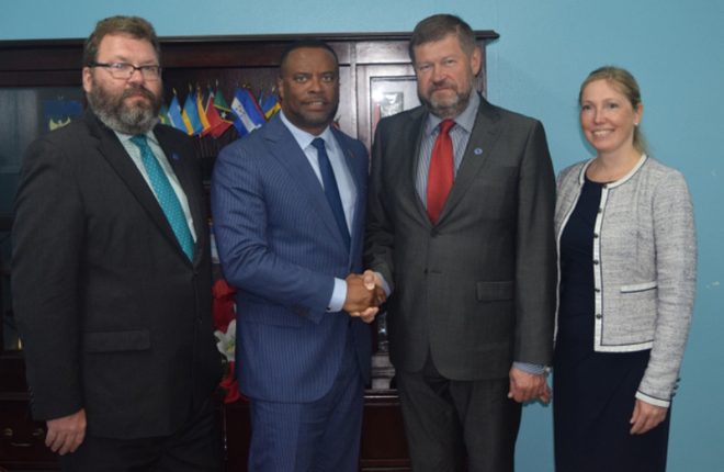 (SKNIS): Minister of Foreign Affairs and Aviation, the Honourable Mark Brantley, received a courtesy call from a delegation from Estonia with the aim to promote the candidature of Estonia for a non-permanent seat on the UN Security Council for the period 2020-2021, and to discuss the possibility of developing bilateral relations between Estonia and St. Kitts and Nevis on topical international issues including cooperation in international organizations.