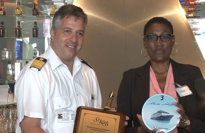 The ship’s captain Dimitris Papatsatsis, thanked the cruise officials for the welcome and said he looks forward to the ship’s return to St. Kitts.