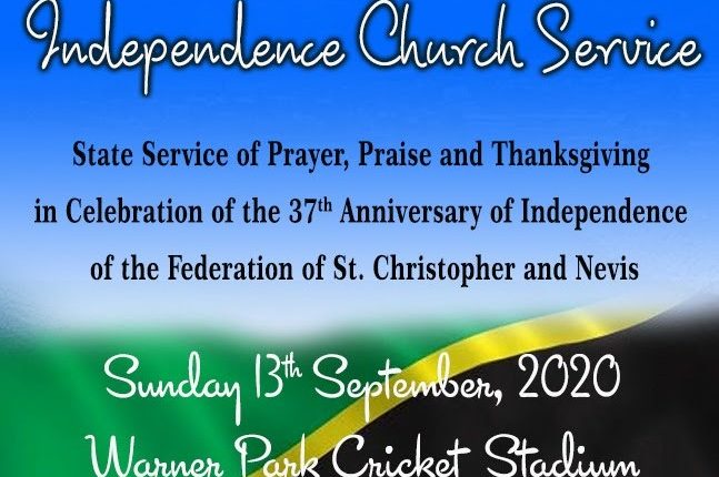 Independence State service of prayer, praise and thanksgiving in celebration of the 37th Anniversary of Independence of the Federation of St. Christopher and Nevis will be held on Sunday 13th September 2020.