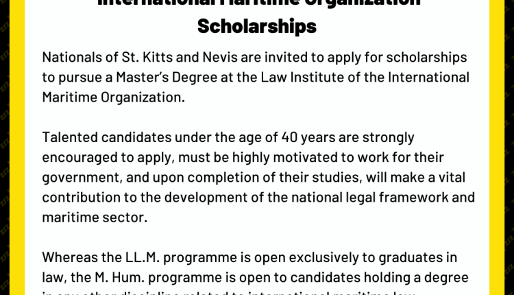 Nationals of St. Kitts and Nevis are invited to apply for scholarships to pursue a Master’s Degree at the Law Institute of the International Maritime Organization.
