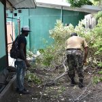 “We came out this morning at approximately 0800 hours. What we’re doing, we’re getting rid of the trees from the roofs, we’re cleaning drains. We’re gonna clean, we’re gonna sanitize. To sanitize right now is important. We’re gonna remove all debris from the compound and disposal of garbage,” he said.