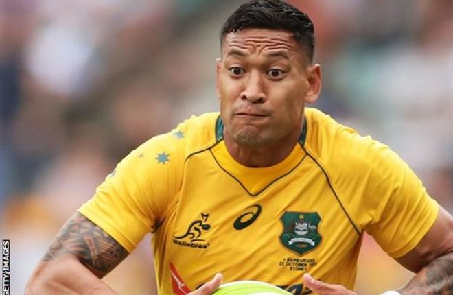 Earlier this month. Australia full-back Folau, 29, said on social media that gay people would end up in hell.