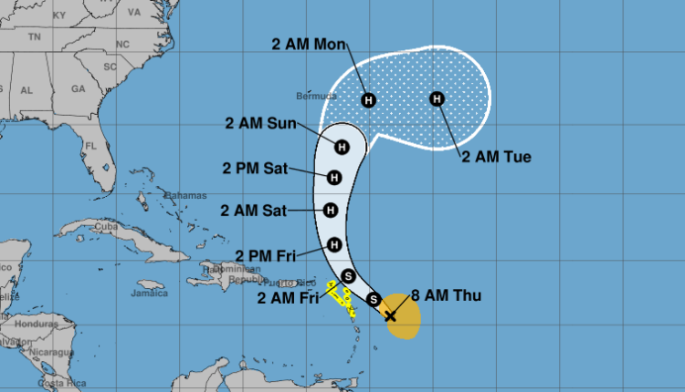 The National Hurricane Center reports Jerry may strengthen into a hurricane by late Friday or Saturday, potentially passing near or northeast of St. Kitts-Nevis tonight. A Tropical Storm Watch is in effect for St. Kitts, Nevis, Antigua, Barbuda, Anguilla, Montserrat, and other nearby islands, signaling possible tropical storm conditions by Friday.