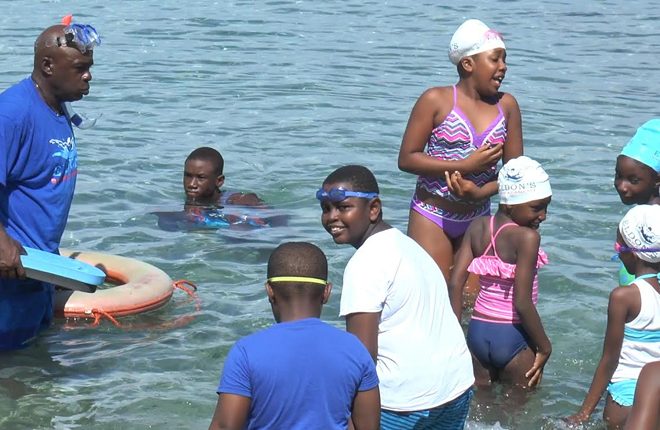(ZIZ News) — Dozens of students were seen splashing and enjoying the island’s sun, sand and sea as they participated in Eldon’s Swim Academy Summer Programme held near the Timothy Beach Resort on Tuesday.