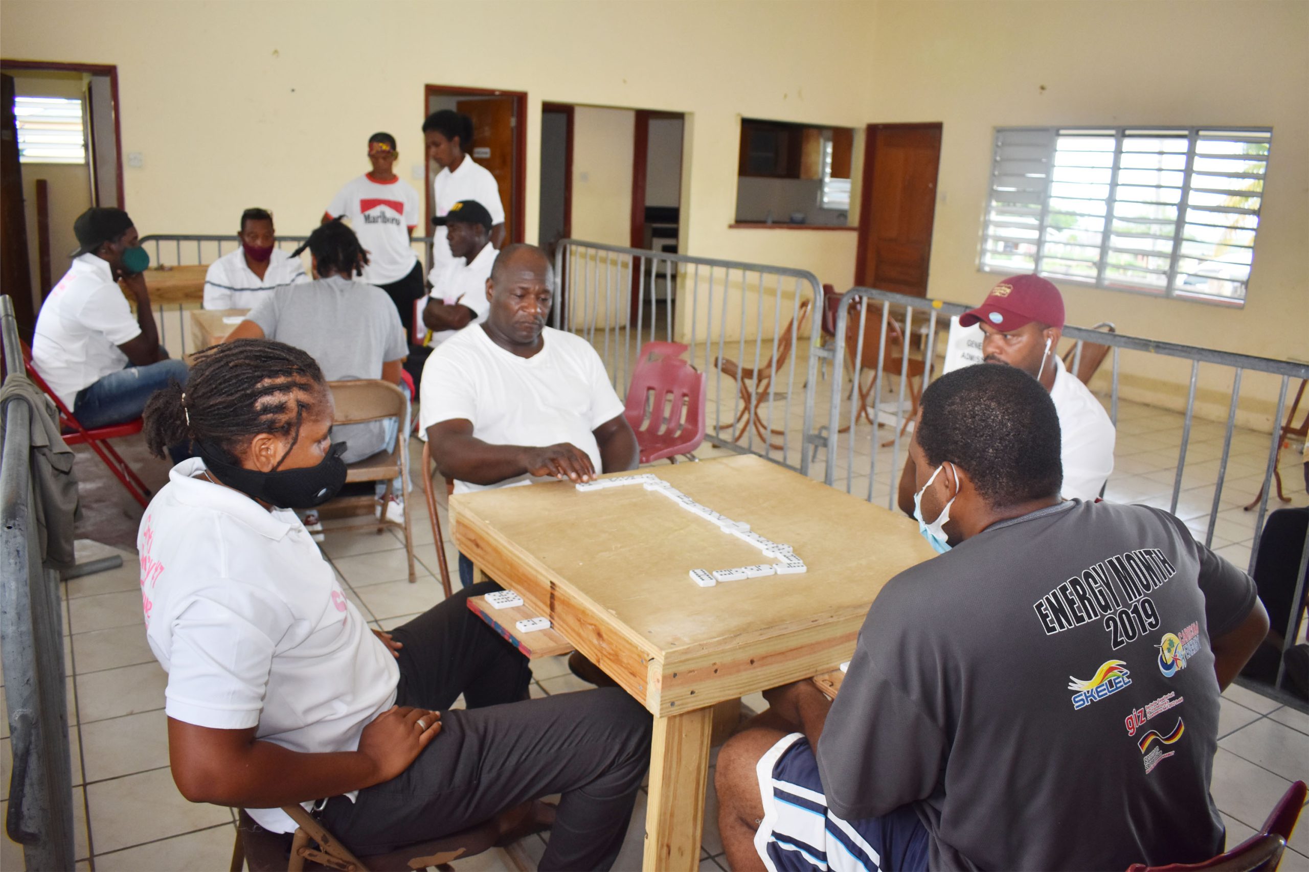 • At the Edgar Gilbert Sporting Complex pavilion in Molineux, Giants Domino Club beat Molineux Domino Club 13-11. Keithly Blanchette of Giants is seen in action.