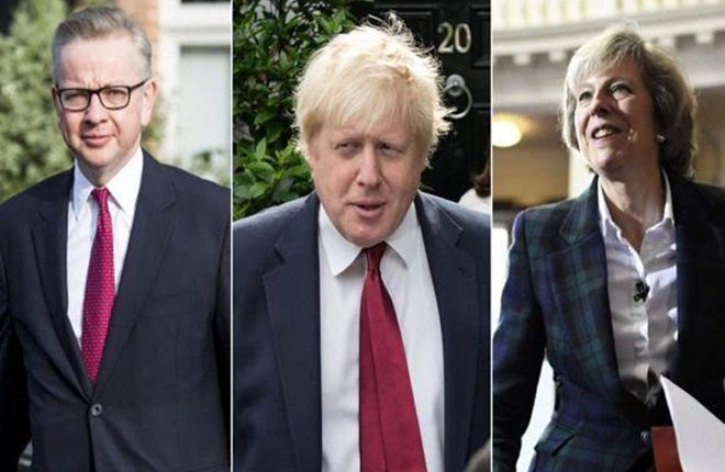 Justice Secretary Michael Gove and Home Secretary Theresa May lead a five-way race to be the next Conservative Party leader and UK prime minister.