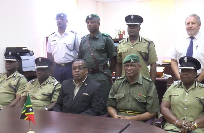 (ZIZ News) — On Monday, Acting Minister of National Security, The Hon. Ian Liburd met with members of The Police High Command and the St. Kitts Nevis Defence Force to address the recent spate of violent crimes in the Federation.