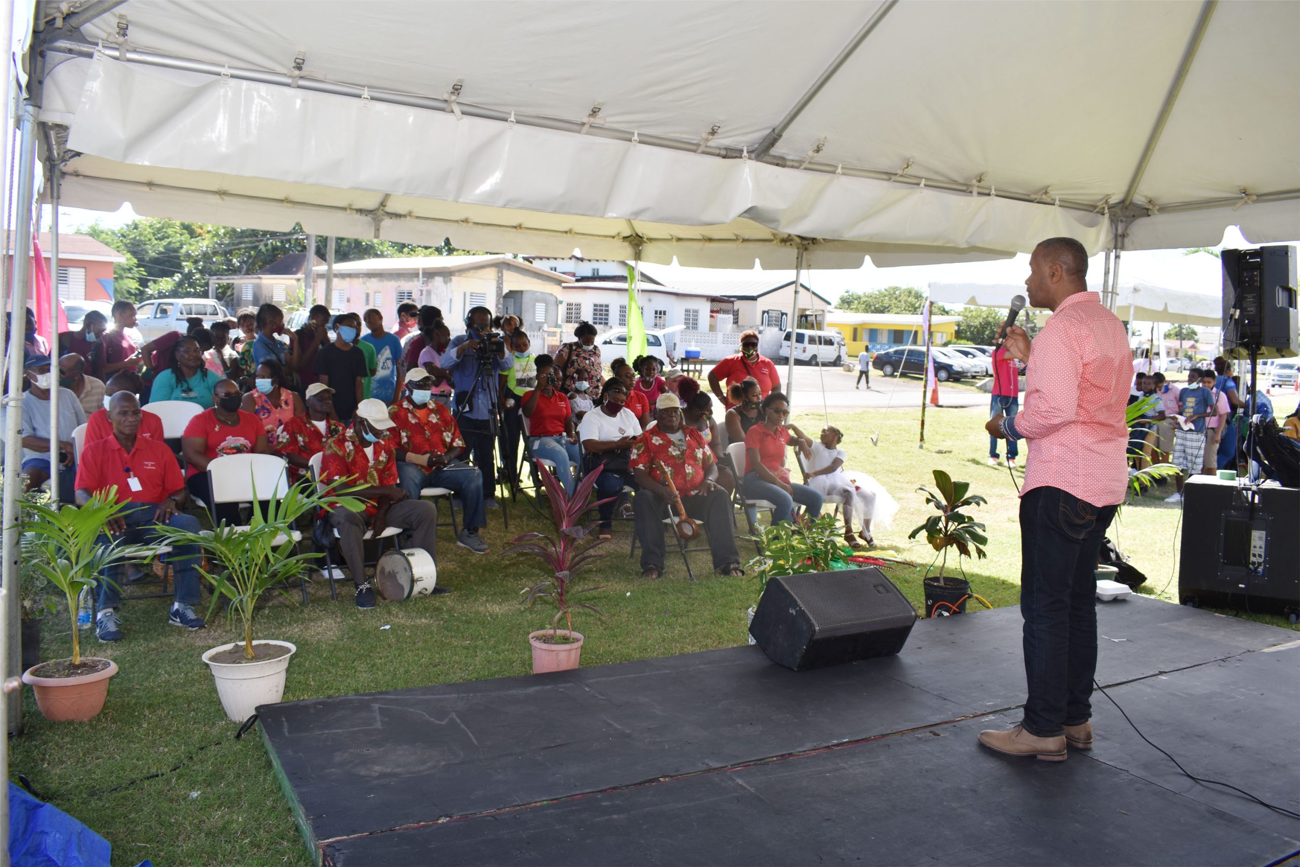 • Minister of Environment and Cooperatives, the Hon Eric Evelyn, addressing participants at Agro Strip 2020 held on Friday November 27 on Pond Road in Basseterre.