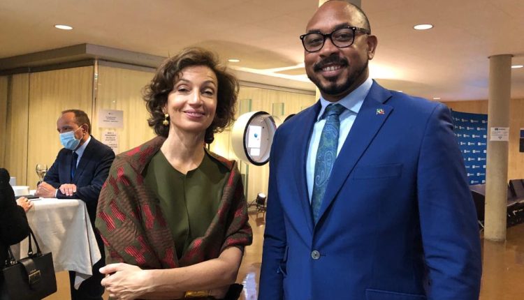 PARIS, France, November 11, 2021– Barely twenty-four hours after arriving in Paris from the World Expo 2020 in Dubai, the Hon. Jonel Powell, Minister of Education, Youth Empowerment, Sport & Culture was delivering his speech at the 41st session of UNESCO General Conference, at which he made a robust call to the international community to accompany small island states in their quest to be heard on key challenges, greatly accentuated by the COVID-19 pandemic.