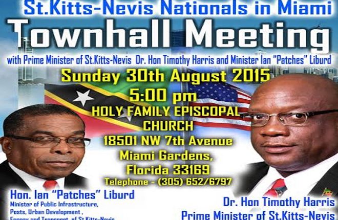 (ZIZ News) – Kittitians and Nevisians living in Miami, Florida will, this weekend get an opportunity to hear, first-hand, from Prime Minister, the Hon. Dr. Timothy Harris and Minister of Public Infrastructure, Posts, Urban Development, Energy and Transport, the Hon. Ian “Patches” Liburd.