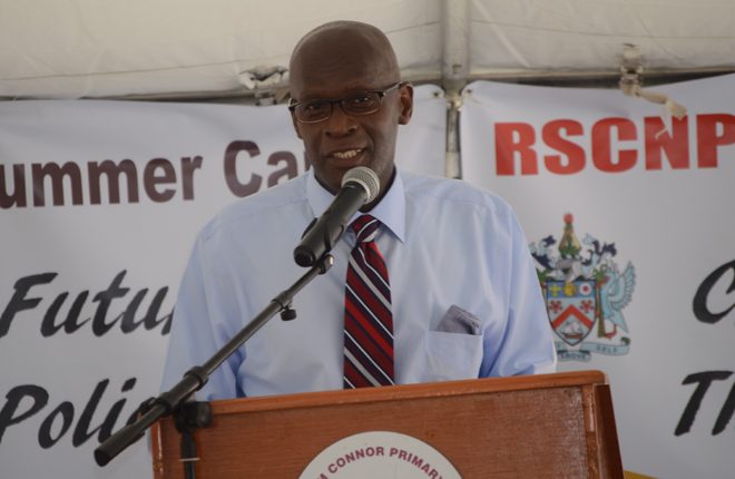 (SKNIS): The Ministry of Education is fully supportive of the Police Summer Youth Camp and is proud to be in partnership with the Royal St. Christopher and Nevis Police Force’s (RSCNPF) initiative, says Permanent Secretary, Vincent Hodge speaking at the opening ceremony of the camp, on August 14, at the Dr. William Connor Primary School.