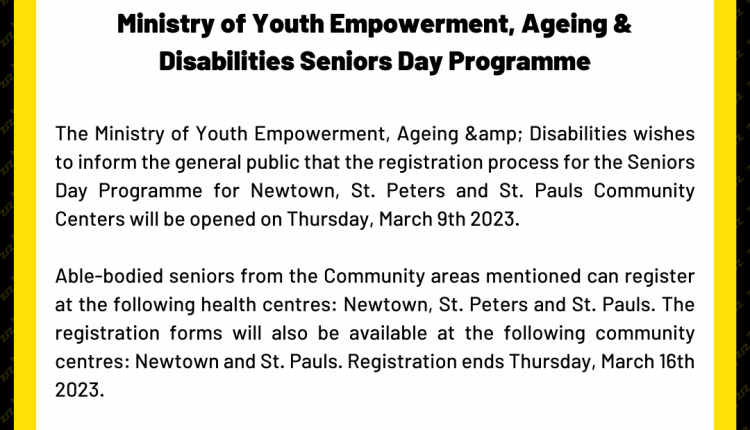 public that the registration process for the Seniors Day Programme for Newtown, St.