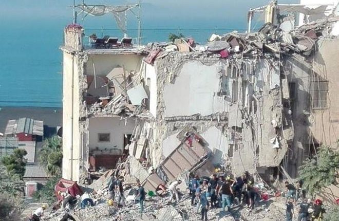 Italian media say two families were living in the four-storey building that collapsed in Torre Annunziata district. Two children are among those missing.