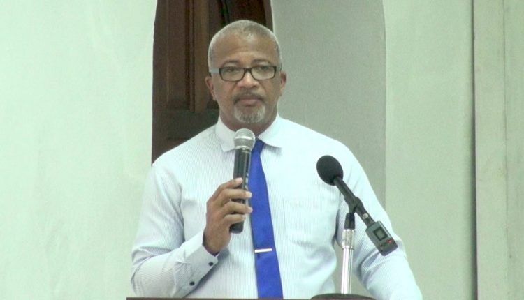 Mr. Deora Pemberton, Director of the Physical Planning and Environment Department, speaking at a General Contractors’ Service Providers Orientation Session hosted by the Department at the St. Paul’s Anglican Church Hall on October 21, 2021
