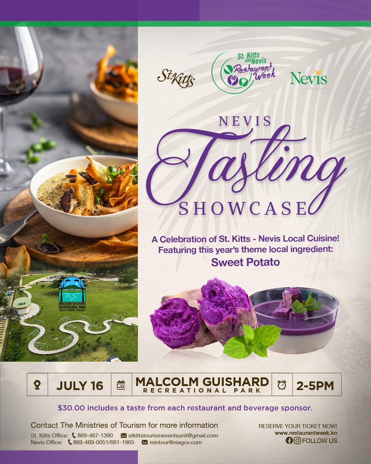 The annual St. Kitts-Nevis Restaurant Week is a celebration of local cuisine when restaurants will offer special menus based on a local theme ingredient, at fixed special prices. This year’s featured local ingredient is sweet potato. Restaurant Week runs from July 14-24, 2022.
