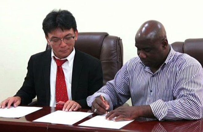 Minister responsible of Fisheries Hon. Alexis Jeffers signed the agreement at his Charlestown office in the presence of General Manager of the JICA office in the Dominican Republic Morita Tatsuya.