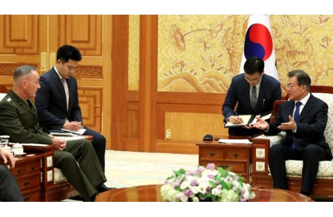 Mr Moon told the visiting top US military official that there must be a diplomatic solution to the crisis.