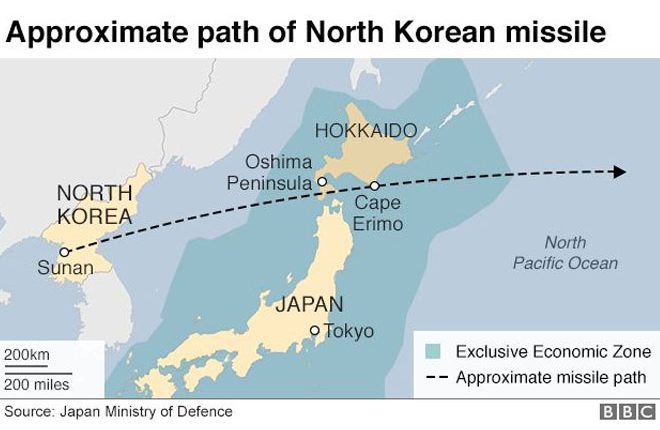 North Korea fires missile over Japan in ‘unprecedented threat’