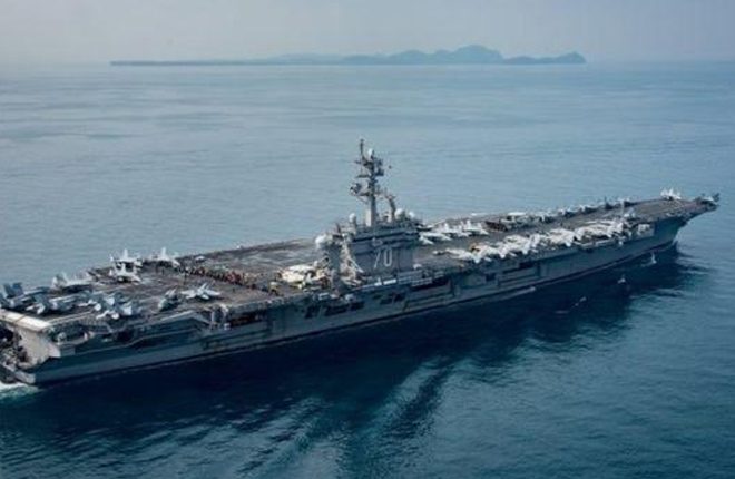 The missile-armed USS Michigan is set to join an incoming group of warships led by aircraft carrier Carl Vinson.
