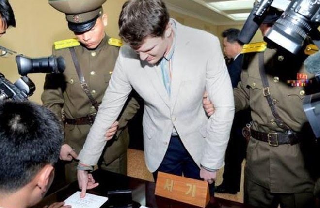 Otto Warmbier, 21, was arrested for trying to steal a propaganda sign from a hotel while on a visit in January.