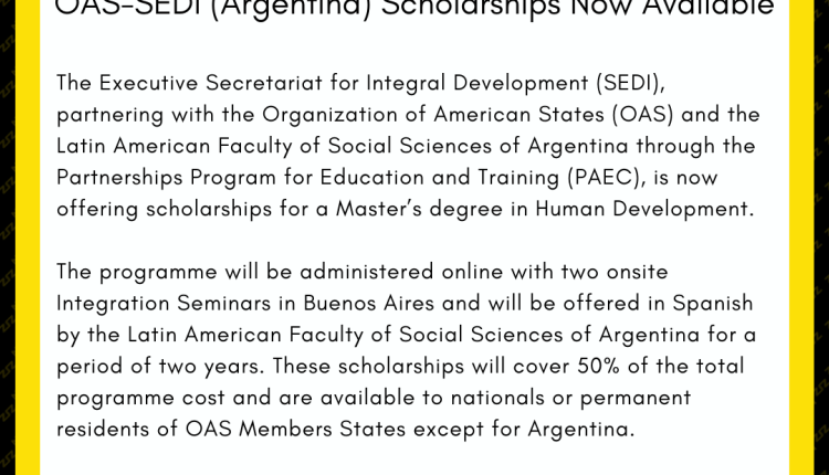 Basseterre, St. Kitts, May 24, 2022 (Ministry of Foreign Affairs and Aviation): The Executive Secretariat for Integral Development (SEDI), partnering with the Organization of American States (OAS) and the Latin American Faculty of Social Sciences of Argentina through the Partnerships Program for Education and Training (PAEC), are now offering scholarships for a Master’s degree in Human Development.