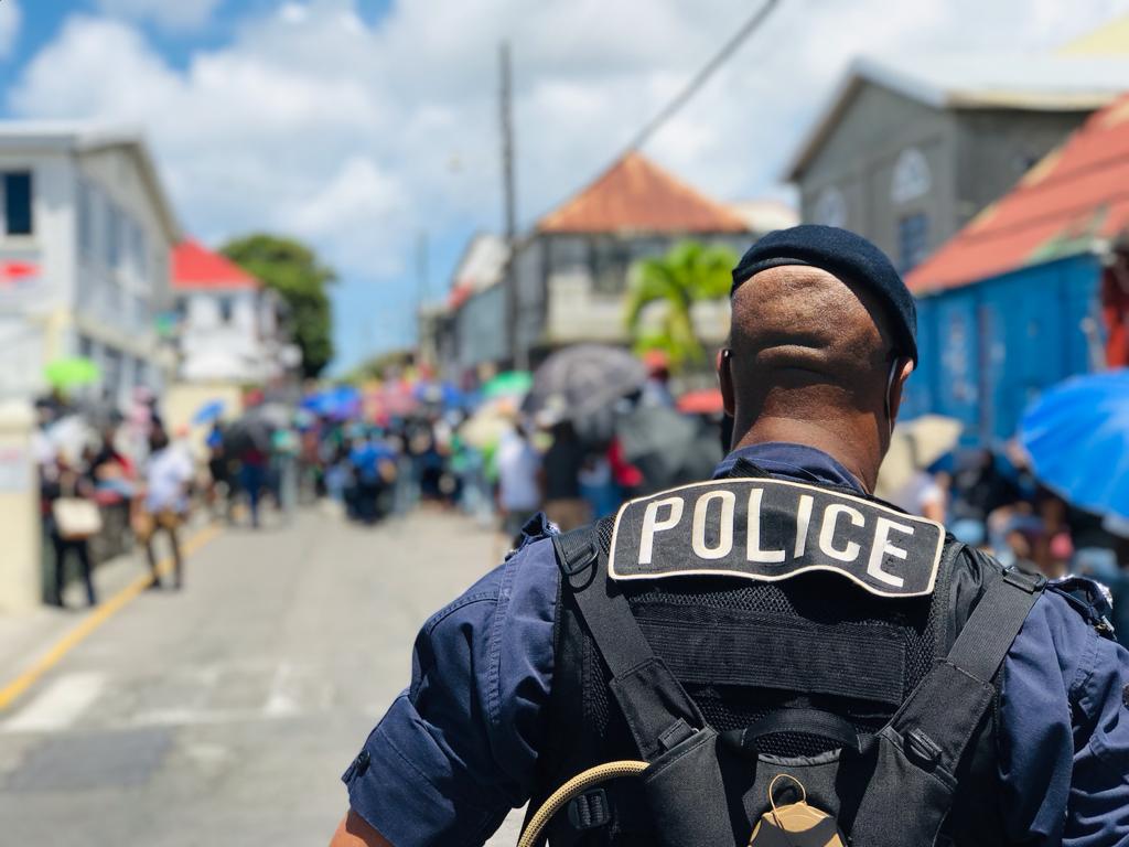 Officers trying to control the chaos at Wesleyan Holiness polling station in Constituency #2