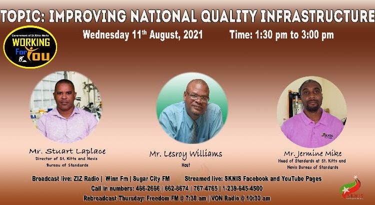 Basseterre, St. Kitts, August 10, 2021 (SKNIS): Officials from St. Kitts and Nevis Bureau of Standards will be featured on the popular government radio and television programme “Working for You” on Wednesday, August 11, 2021.