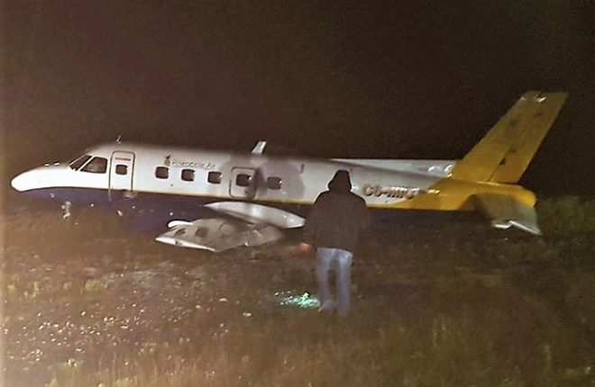 The incident occurred at the Governor’s Harbour Airport shortly after 8 p.m. on Tuesday, as the Pineapple Air Charter flight from New Providence approached the end of the runway.